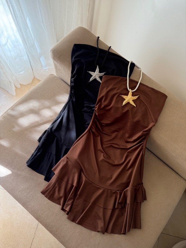 Vestido strapless volado